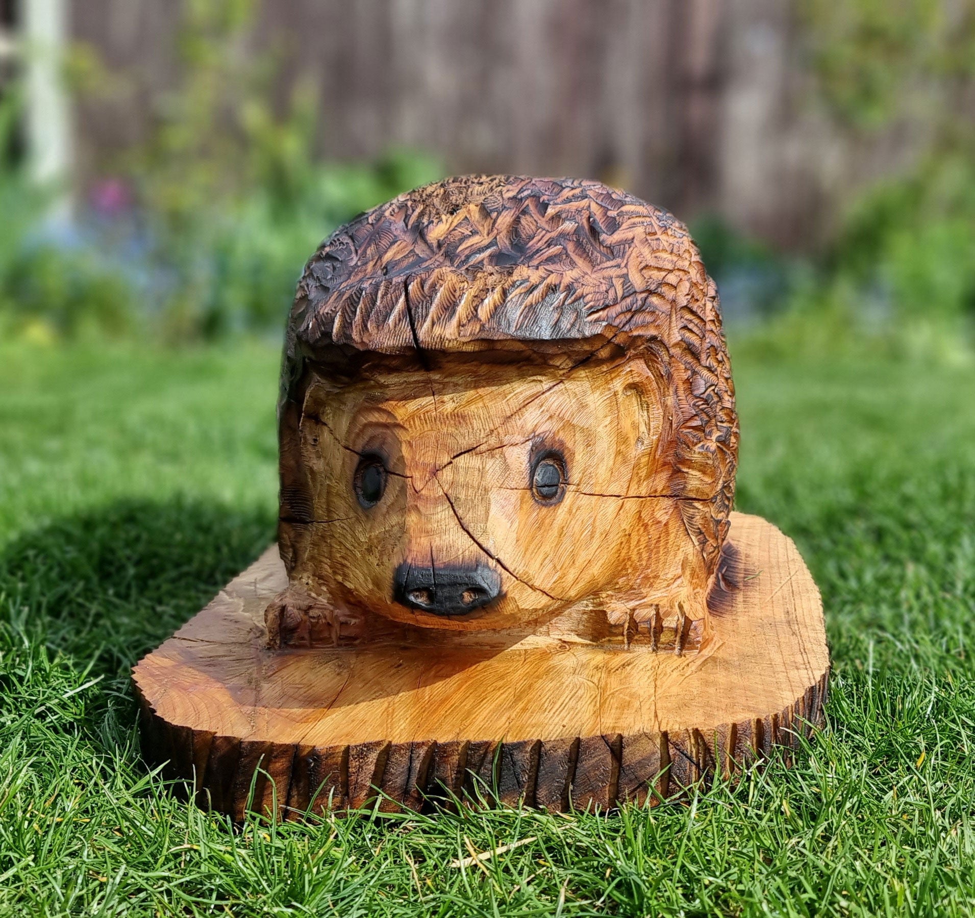 The best place to keep your chainsaw sculpture is in a shady spot in the garden away from direct sunlight. It’s not necessary to keep your sculpture dry as the oils it’s been treated with will protect it from rot, in fact natural atmospheric moisture will benefit the timber and help prevent it drying out too quickly. Ideally place your caving on a free draining surface such as gravel, paving slabs, or plant pot stands.