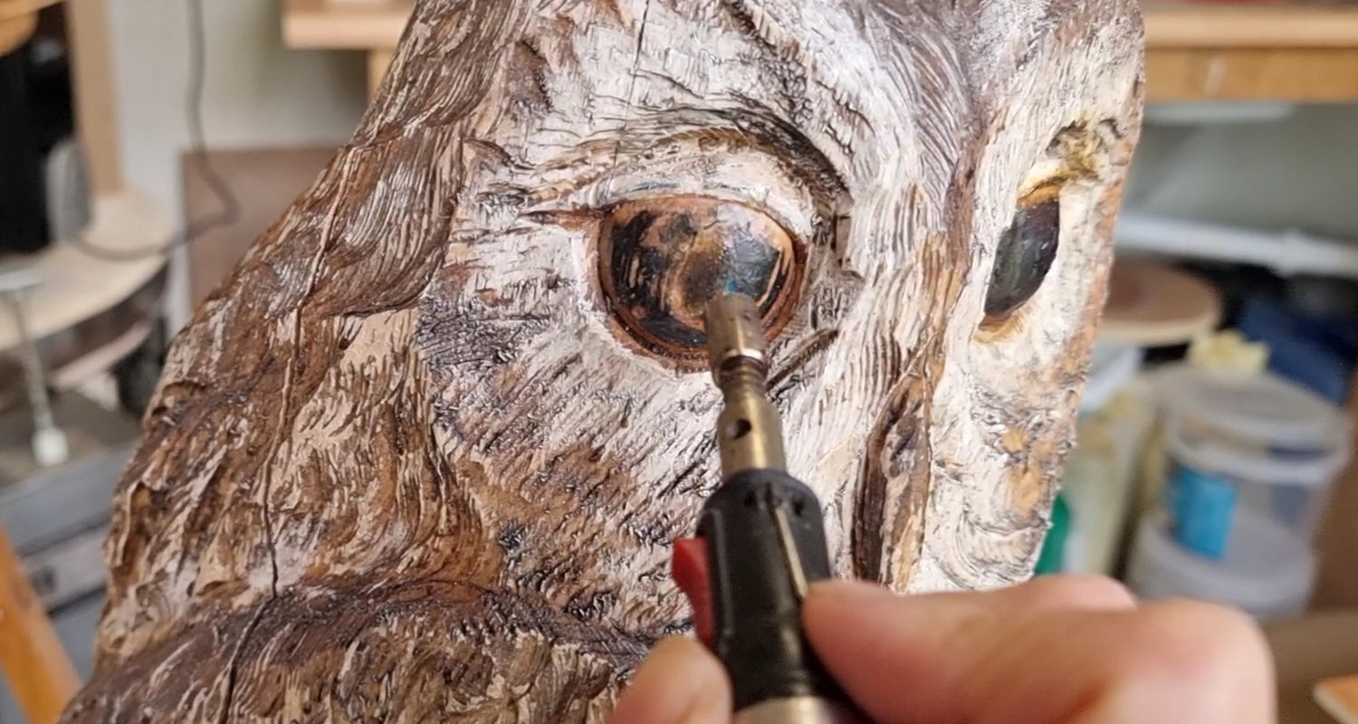 Once the carving is thoroughly dry apply a coat of wood preserver as directed on the tin. If left the carving will eventually weather to a silvery grey colour.